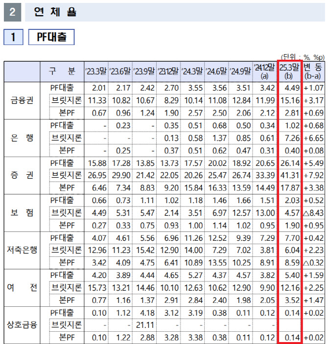 최근 부동산 PF 연체율은 전 금융권에서 상승하는 추세다. 특히 저축은행과 증권사의 연체율이 높은 수준을 유지하고 있어 잠재적 위험 요인이 되고 있다.