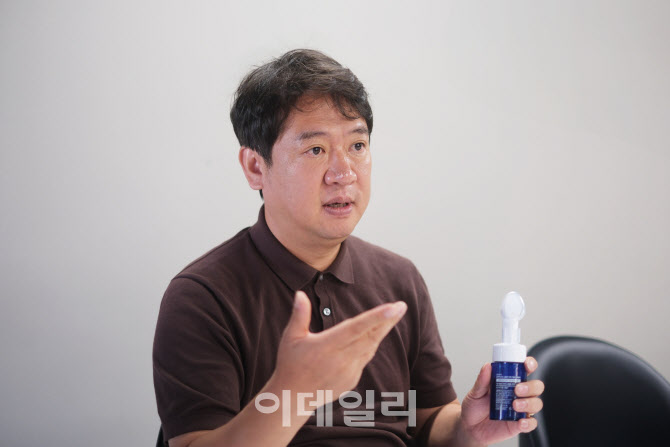 배 대표는 블루비오틴 스칼프 제품 7종을 어루만지며 각 제품의 기능성을 자신 있게 소개했다. 그동안 탈모케어 시장이 샴푸 위주로 형성돼 있다면 제품을 다각화해 두피 각질 케어부터 항균·진정·영양 공급까지 세밀하게 관리할 수 있도록 하겠다는 취지다.